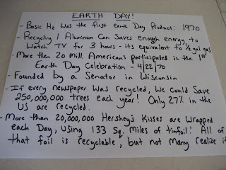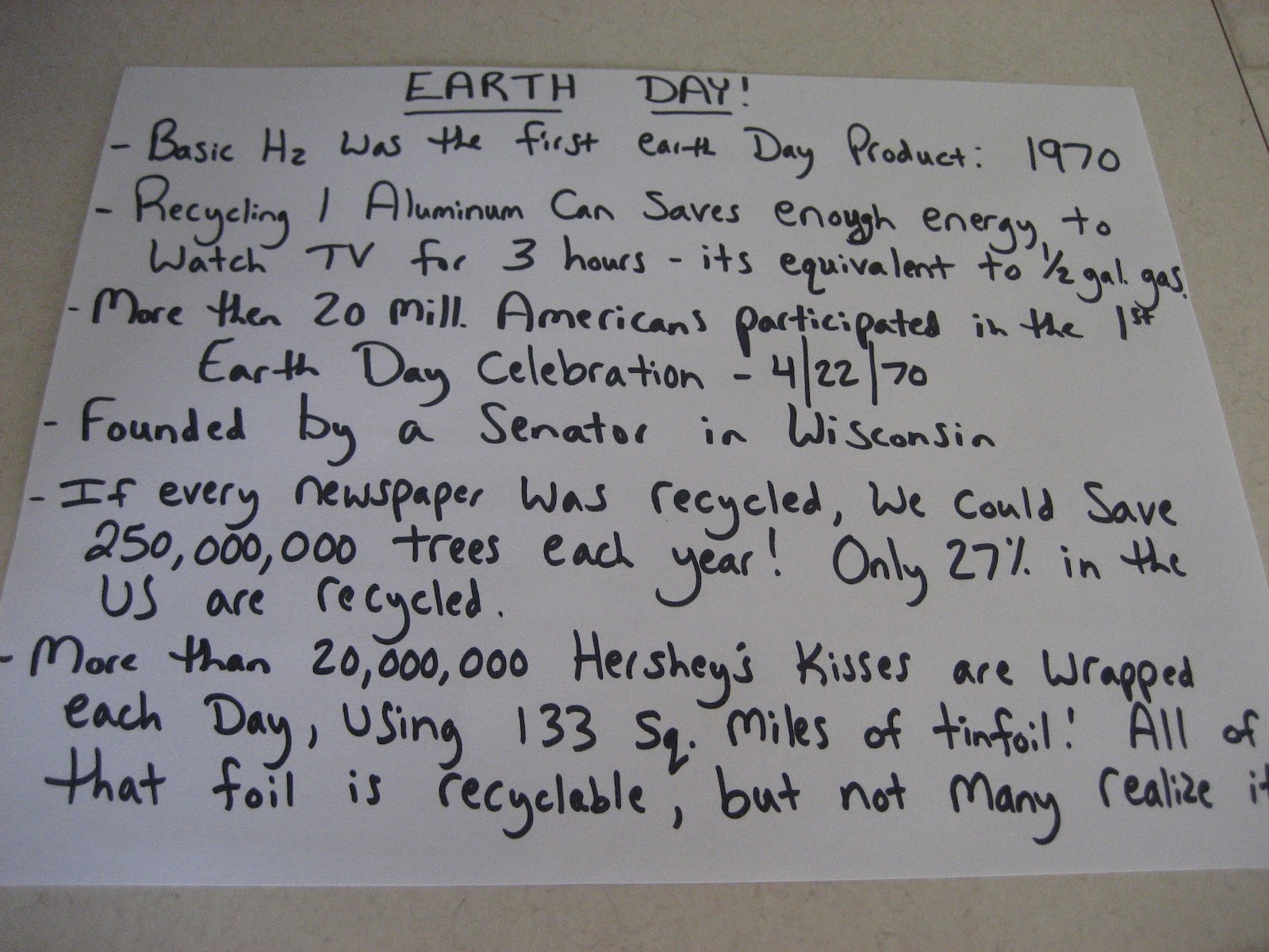 | I had a few facts out about Earth Day. I love the last one about the Hearsey’s kisses:) |
