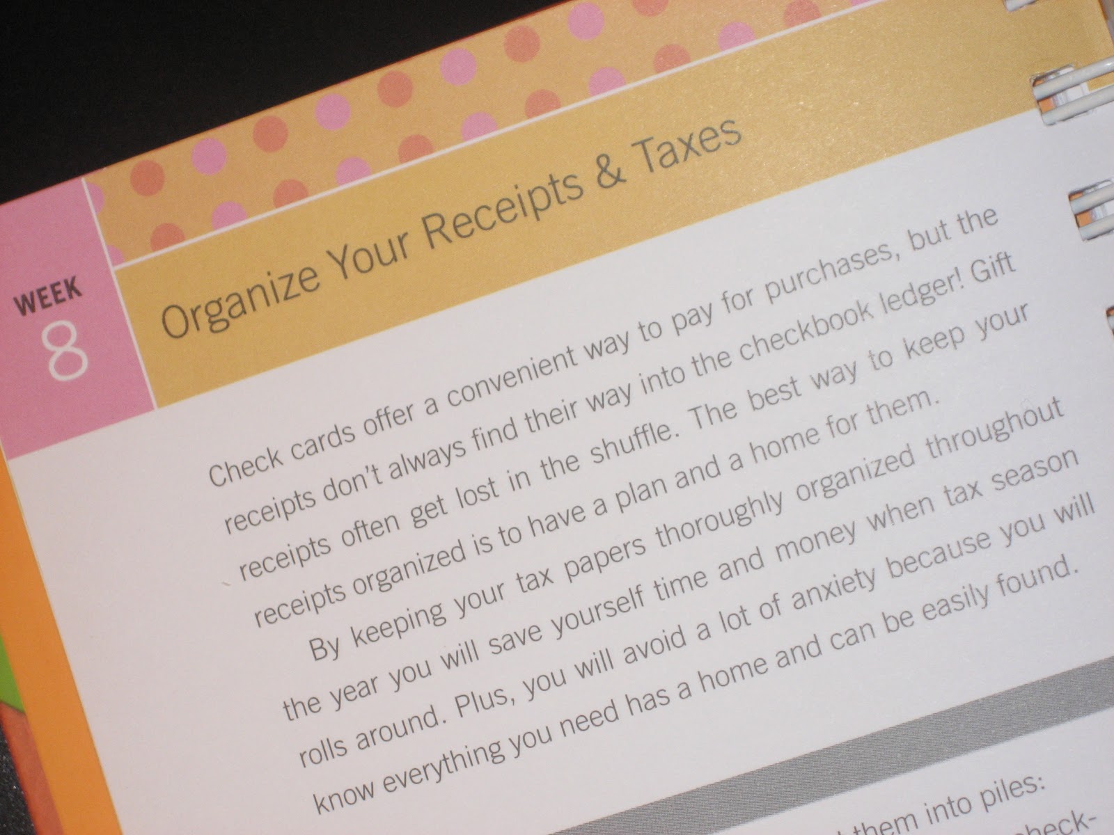For more information about organizing your receipts and taxes, please read Organize Now.