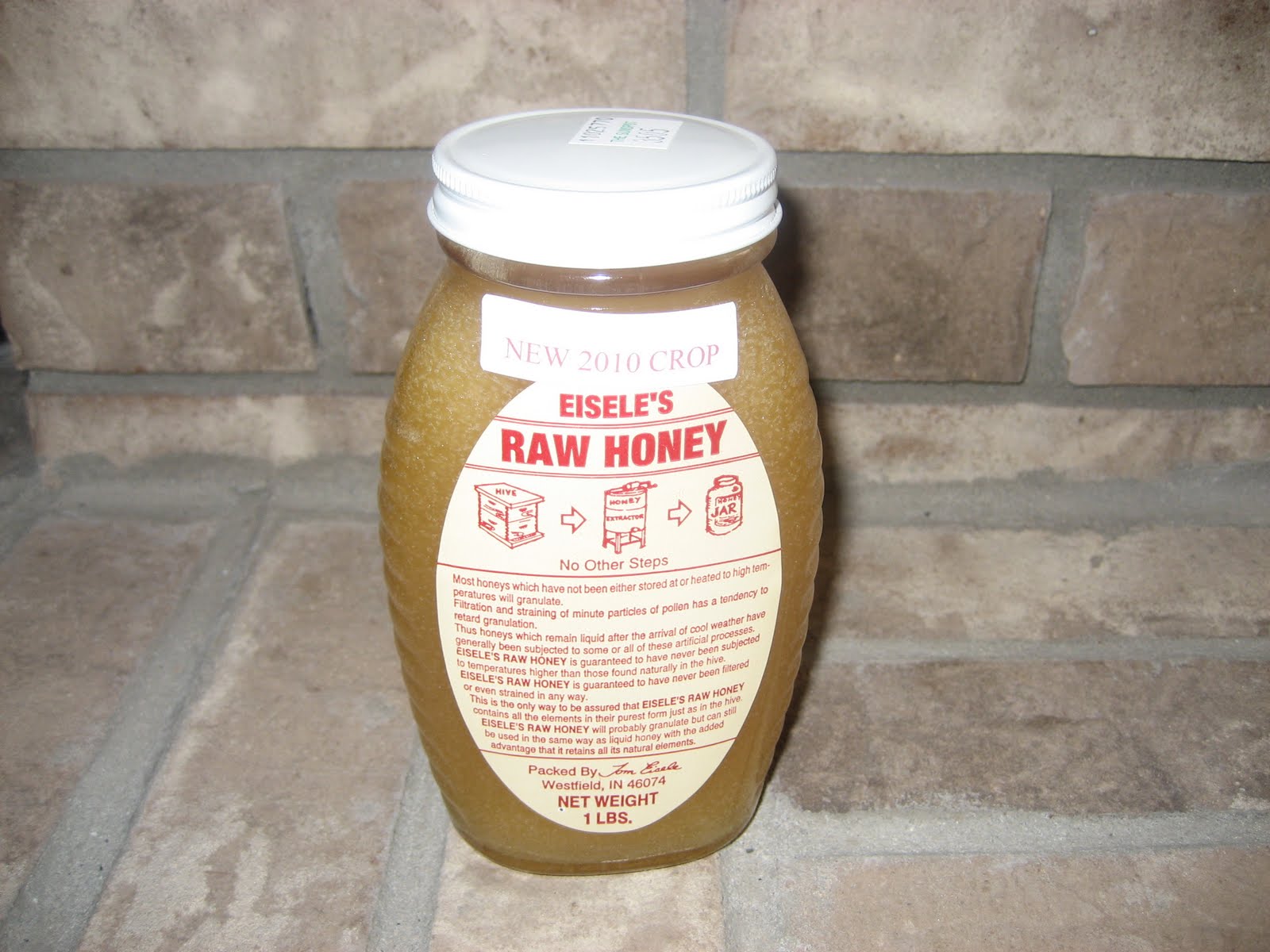 And not just regular honey, but raw honey. We buy ours from a health food store because I can’t find it at the regular grocery store. It looks a little different then the honey I grew up with, and in my opinion, actually tastes better. It is thicker and more of a dull color. It has a richer taste and is a natural product, which makes it a good sugar substitute.