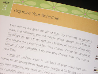 Jennifer, the author, suggests collecting all of your post-it notes, scraps of paper, things to do that you have stored in your mind and on calendars and putting them on a to do list to keep in your planner. I had to laugh when I read this tip because I am so guilty of writing down a million post-it notes to myself and then having them all over my desk. When I am looking for one of them, I can never find it and I waste time looking. lol. Am I the only one who does this?? ๐
