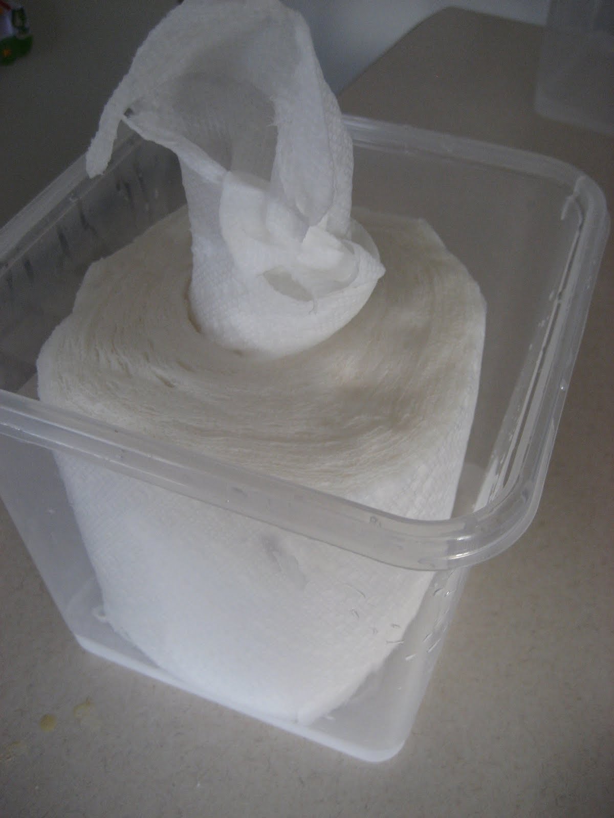 I washed the container, put the paper towel in and poured the water mixture over the top.