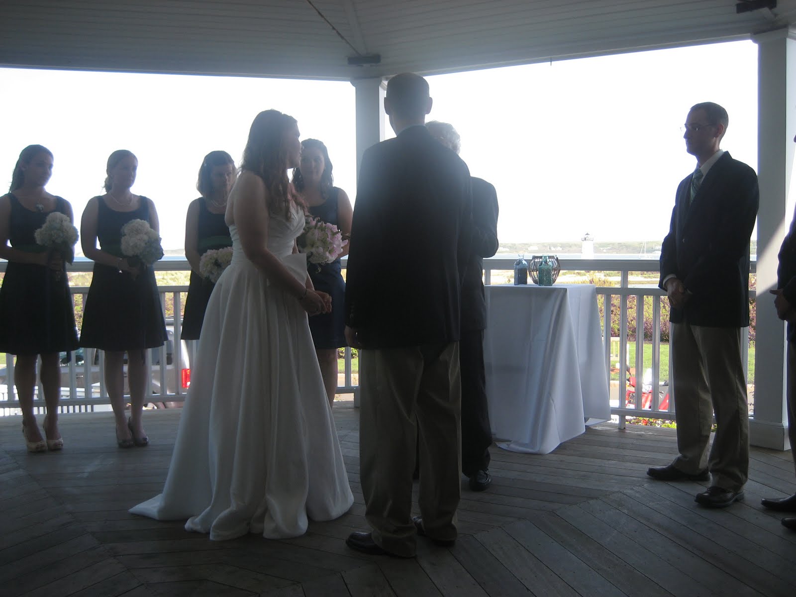 My husband before the ceremony began. It was a wonderful location with the lighthouse in the background. The weather couldn’t have been better.