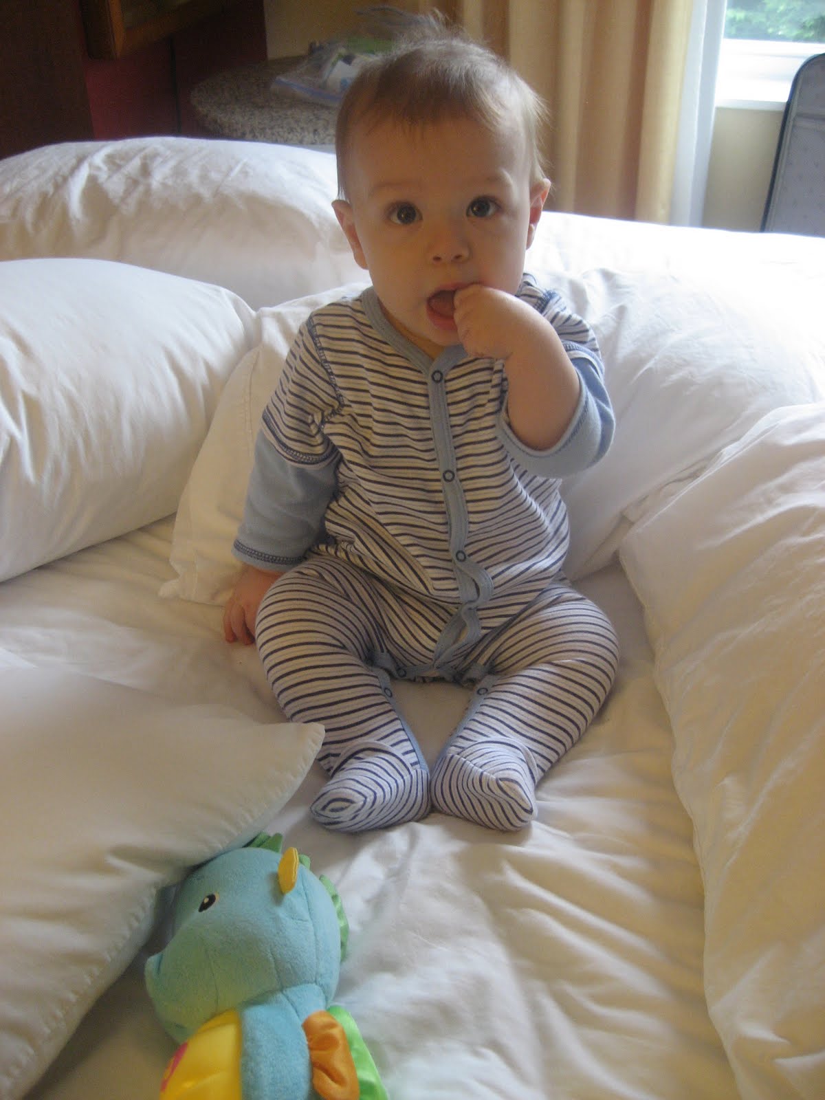 And this is my youngest, Benjamin. He was my preemie and will be a year in August. Now THAT I really cannot believe. Where does the time go? He is so healthy though and such a happy little guy. Both boys did so well traveling.