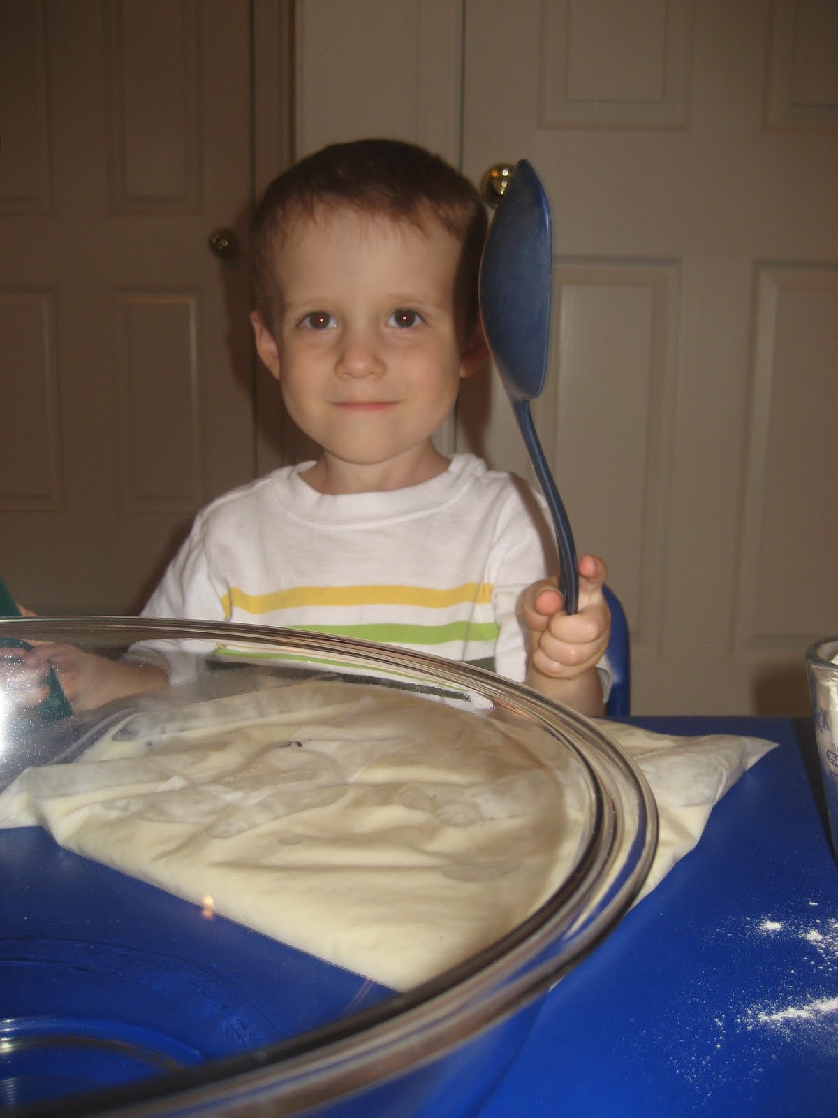 I had never baked this before, but it was so easy. If you aren’t familiar (I wasn’t!), it is a sweet bread and the batter takes 10 days to mature before you bake it. Each day, you do something different to it to get it ready. Most days you just mush it around in the bag. When it was ready, my toddler Andrew and I had fun making it.It made two loafs.