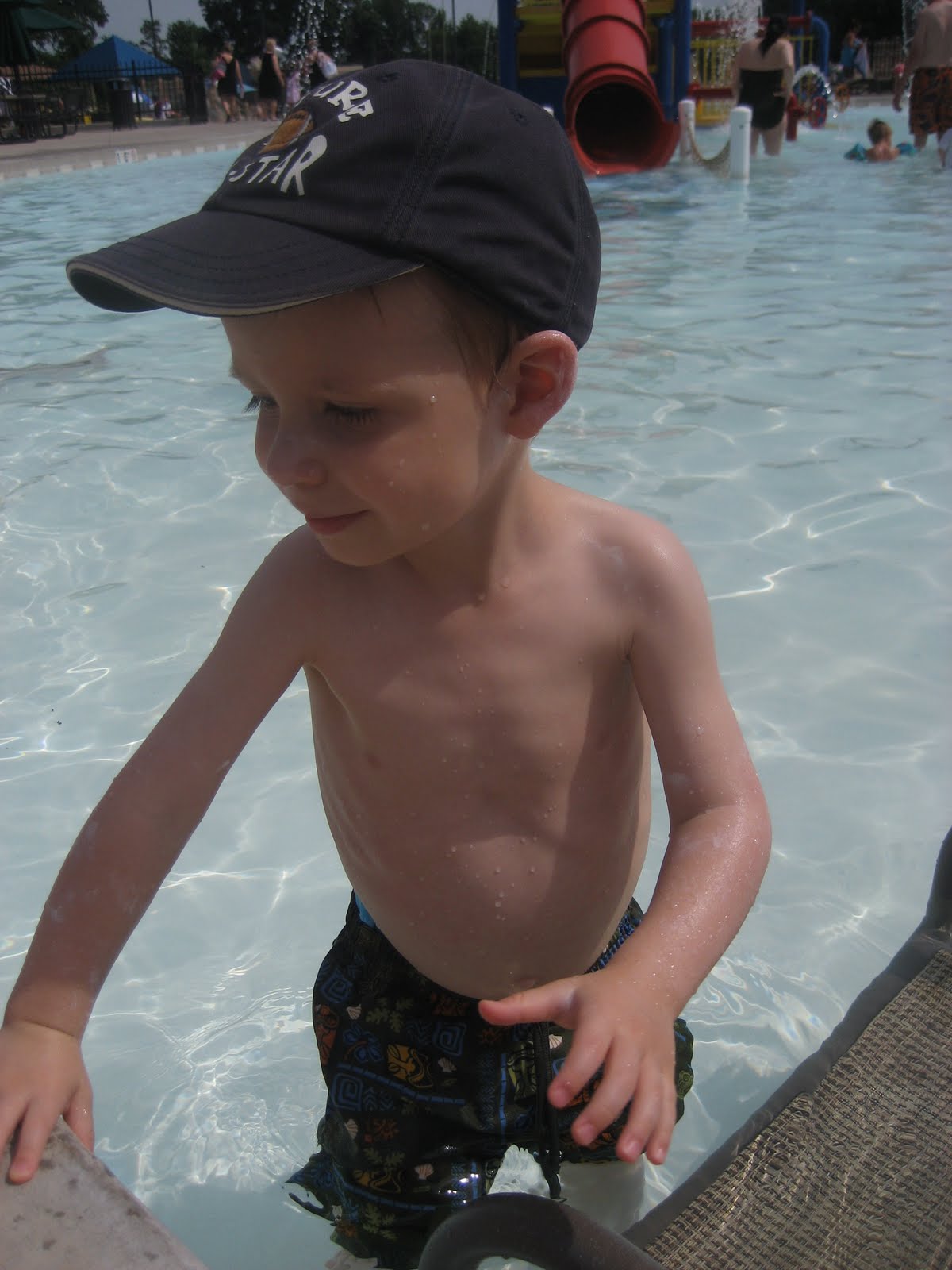 We went to the water park on Sunday afternoon. We did this last year too and had a blast. Here is our toddler, Andrew, having a great time.