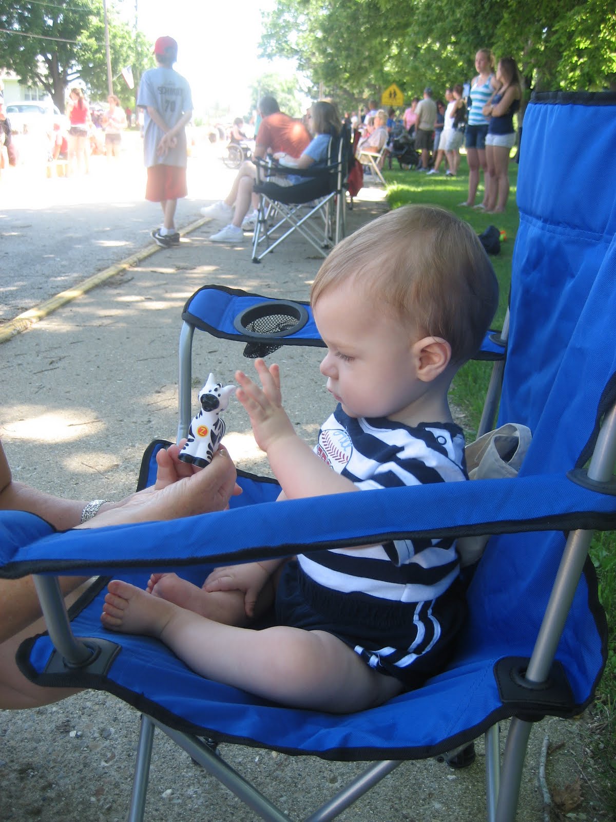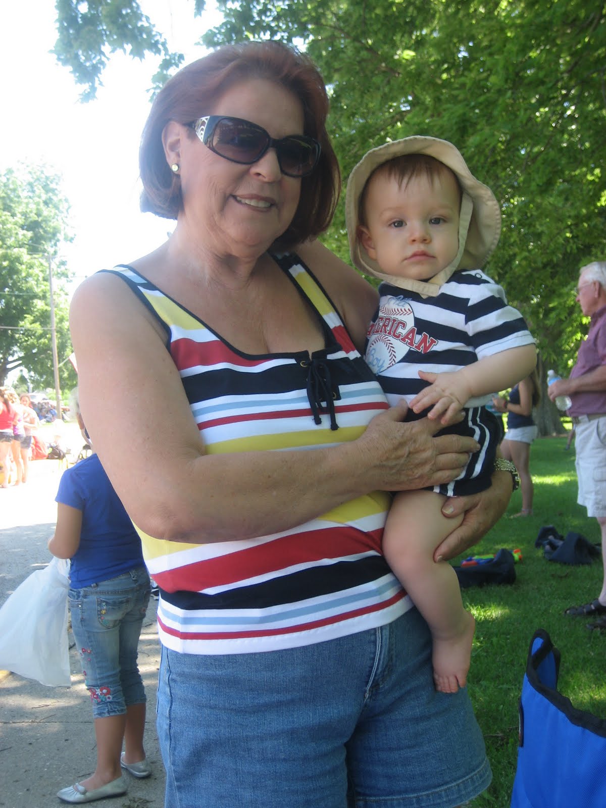 Benjamin with his grandmaWe went to the 4th of July parade at a nearby town where my husband went to school. The baby really loved people watching. He only cried when the firetrucks came by with sirens blaring.