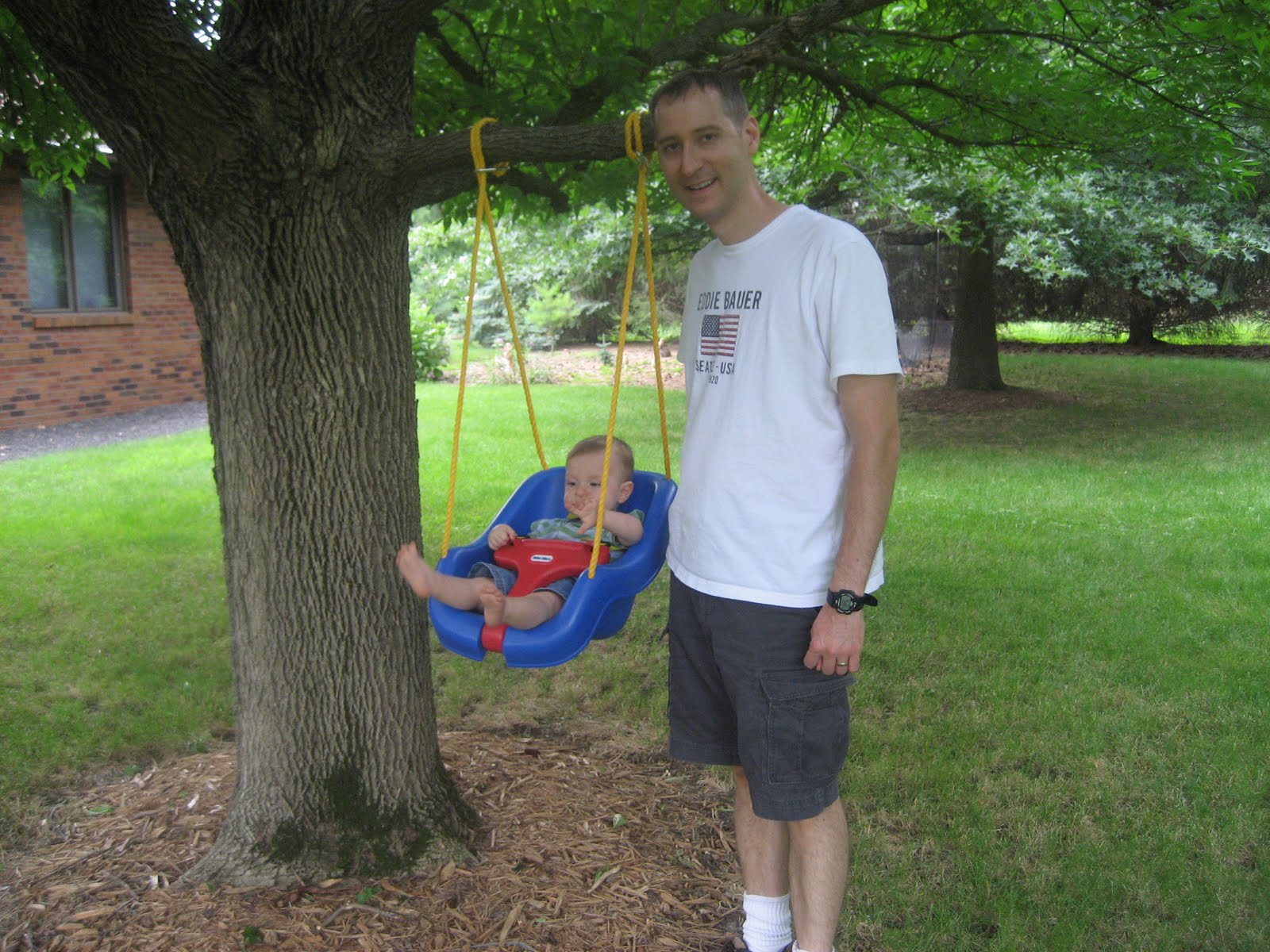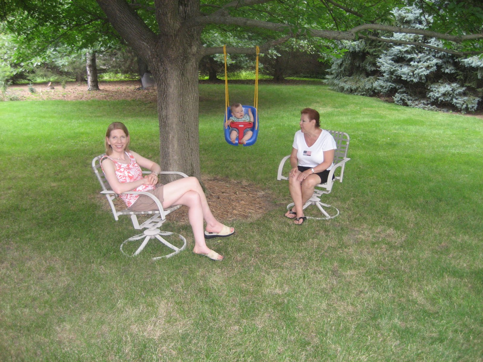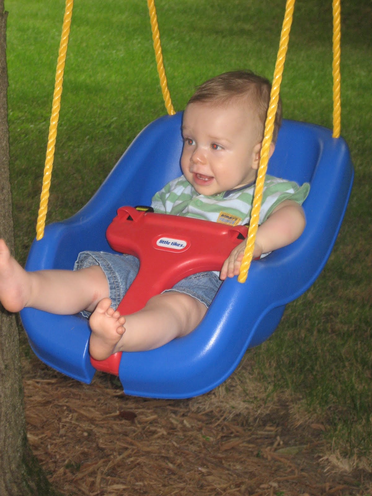 Afterward, we enjoyed my in-laws wonderful backyard. It is like a park there. And Benjamin just loved the swing set up for him. Andrew loved this when he was a baby too.